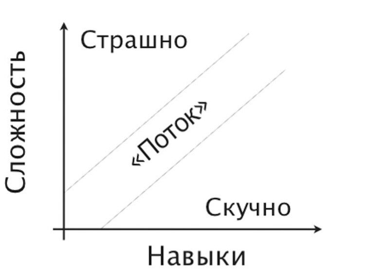 Радость возникает на границе между скукой и боязнью не справиться, когда сложность задачи соответствует уровню мастерства, необходимому для ее решения", - Чиксентмихайи М.