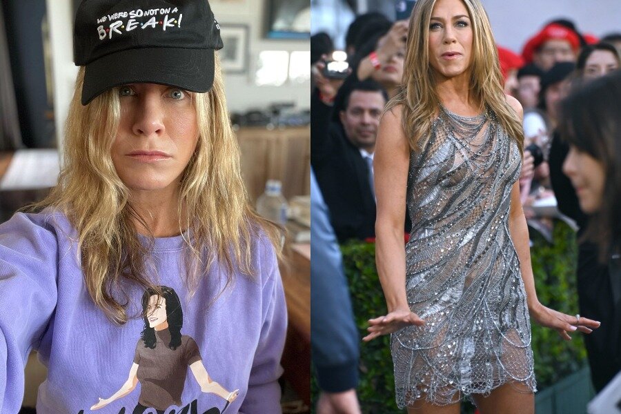 Буквально на днях 54-летняя Энистон была в Нью-Йорке, где – какая ирония! – ходила на утреннее шоу Good Morning America в винтажном платье-футляре Tom Ford аж 1999 года. Затем она вернулась в Лос-Анджелес – готовиться к тамошней премьере «Загадочного убийства 2». Ее актриса посетила уже в наряде Atelier Versace, спровоцировав мощную волну обсуждений в Сети. Полупрозрачное платье, сшитое как будто из серебряной паутины, красиво облегало подтянутую фигуру актрисы, демонстрируя и руки, и ноги – все как Джен любит. Мейк в натуральных т