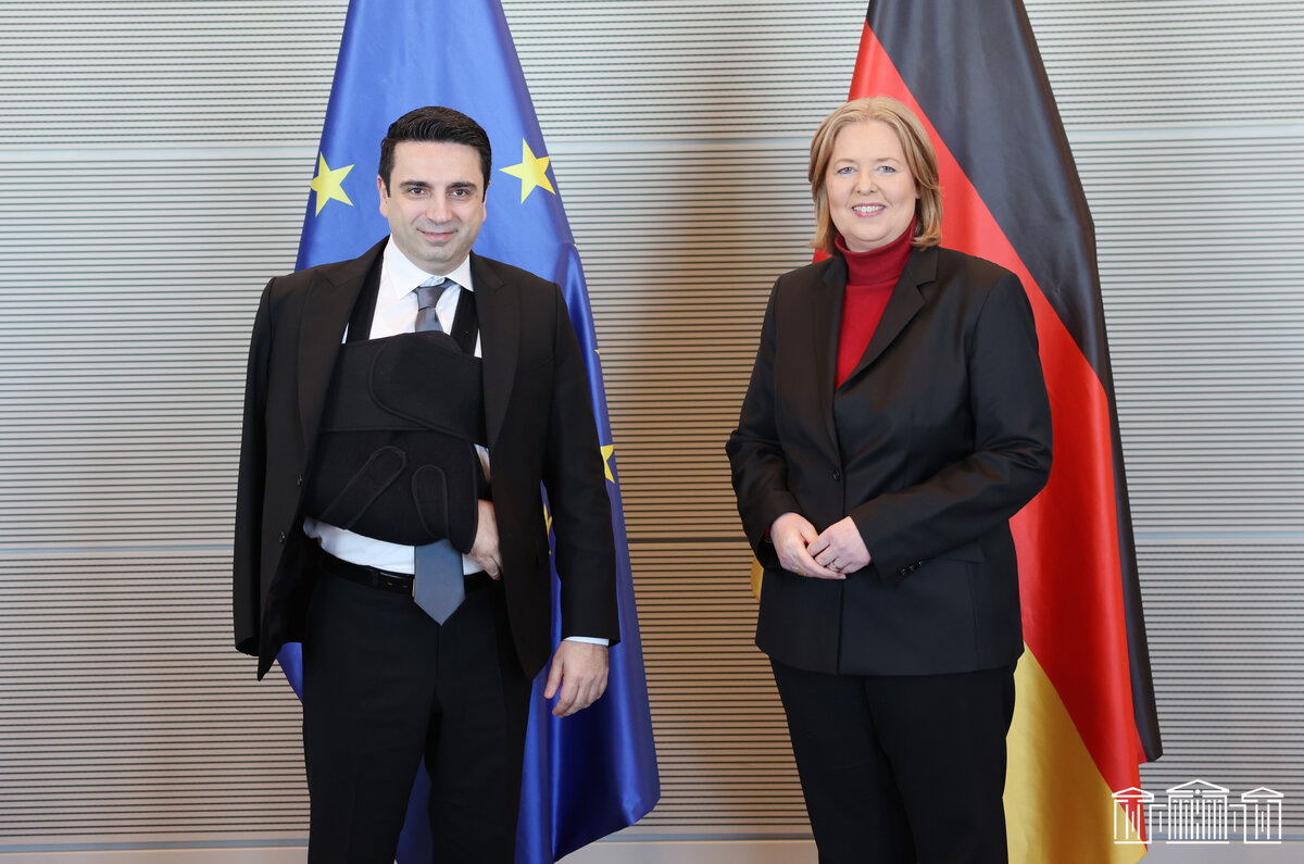 АрмИнфо. В рамках рабочего визита в Федеративную Республику Германия делегация, возглавляемая председателем Национального Собрания РА Аленом Симоняном, 28 марта встретилась с главой Бундестага ФРГ Бербель Бас. Как передает пресс-служба НС РА, после частной беседы глав парламентов Ален Симонян и Бербель Бас совершили прогулку по Бундестагу, после чего состоялась встреча в расширенном составе. Было подчеркнуто стабильное развитие дружественных отношений между двумя странами и углубление межпарламентского сотрудничества, отмечена важность многопланового парламентского сотрудничества между НС и Бундестагом, взаимных визитов депутатов. Спикер НС РА отметил, что Армения придает большое значение реализации Соглашения о всеобъемлющем и расширенном партнерстве между ЕС и Арменией и высоко ценит поддержку Германии в этом вопросе. Представляя послевоенную ситуацию и говоря о необходимости скорейшего решения проблем безопасности в регионе, спикер НС отметил, что разрушительные события на Южном