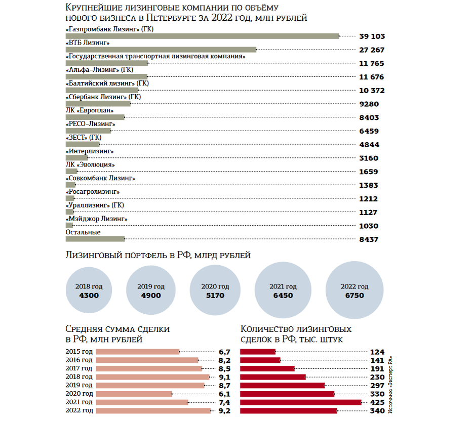 По данным анкетирования 78 компаний агентством "Эксперт РА", объём нового бизнеса лизинга в Петербурге по итогам 2022 года по сравнению с 2021–м сократился на 24%, или на 47 млрд, до 147 млрд рублей. Впрочем, такое падение можно считать техническим. В минувшем году от участия в рэнкинге отказался "ПСБ лизинг" (связанный с одноимённым опорным банком по гособоронзаказу). В 2021 году он показал объёмы финансирования нового бизнеса в городе на 41 млрд рублей. Если предположить, что в 2022 году его результаты сопоставимы с итогами 2021–го, тогда падение местного рынка можно было бы оценить всего в 3%.