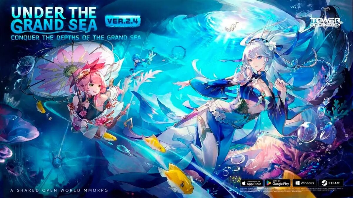 Во всех версиях Tower of Fantasy выпущено обновление "Under the Grand Sea" 2.4, в аниме игру добавили большую территорию с сюжетом, транспорт, миссии, подземелье, босса и множество ивентов. Добавлена 10 глава главного сюжета, странникам предстоит найти новых друзей и узнать всю правду об Абиссантах. Подводная местность Великое море содержит много мини-локаций, пазлов, уникальный дизайн и столицу Иннарс. Появились подводные аппараты "Diamond Wings", "Sunfish", "Vision Sphere". Введены свежие миссии и два мировых босса: "Abyssant: Scylla" и "Abyssant: Haboela". Дополнительно ввели данж "Кольцо забвения" и симулякра Lan, активировали новые сезоны и сразу несколько ивентов с подарками. Скачать патч 2.4 для ToF и начать играть можно с 12:00 по Москве. Для ПК версии объем загружаемого контента составляет 19GB, для Android 0, 9GB, а для iOS 2,4. На европейских серверах наконец-то появился перевод всего текста на русский язык. Новость на сайте: https://topinator.ru/267-dlja-tower-of-fantasy-v