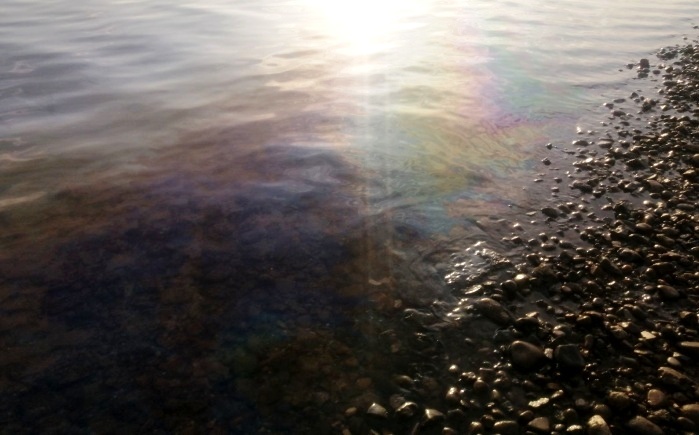 На правобережной стороне Астрахани обнаружили большое маслянистое пятно на речной поверхности
