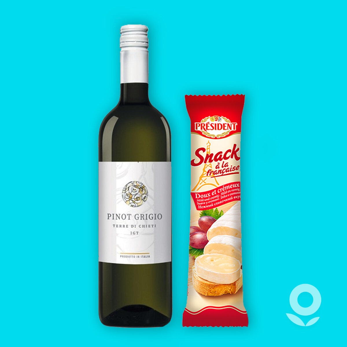 Сырный сомелье Александр Крупецков помогает выбрать в «Ленте» идеальную винную компанию для сыра. Сыр с белой плесенью + белое сухое Важно помнить о том, что вино и сыр должны быть равной силы, чтобы вино подчёркивало вкус, но не перебивало его. Яркий ароматный мягкий французский сыр с белой плесенью прекрасно сочетается с белыми винами, но требует свежих, фруктовых вариантов. Идеально подойдёт к белому сухому сортовому ординарному вину TERRE DI CHIETI Pinot Grigio (Италия). Для этого вина характерен нежный букет с нотами яблока, белого персика и ананаса. Вкус фруктово‑минеральный с тонкой кислинкой.