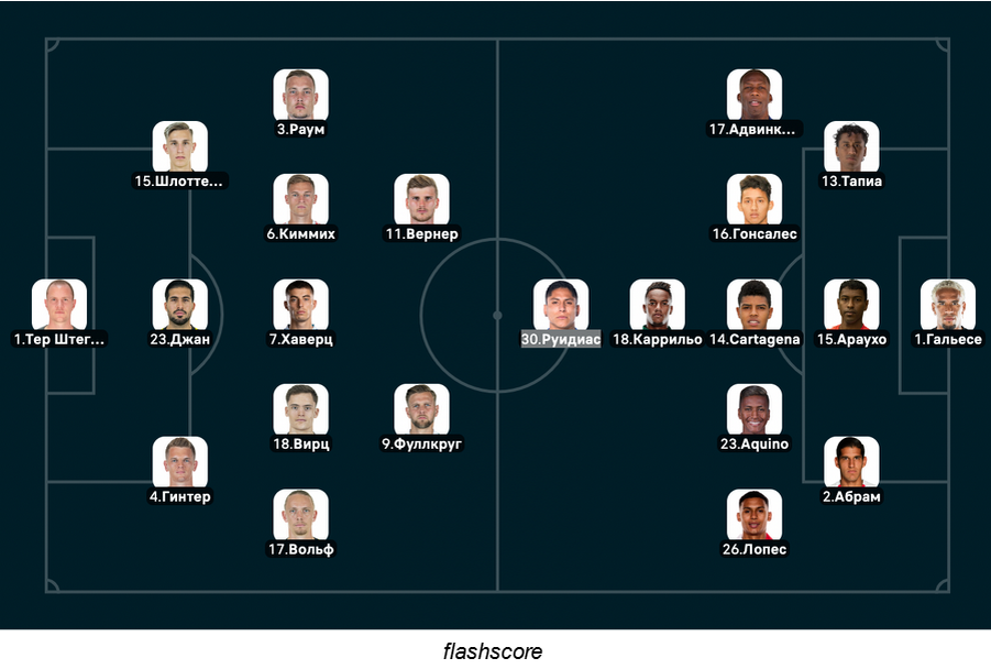 Германия: Тер Штеген, Вольф (80’ Вагноман), Керер, Гинтер, Раум (68’ Гюнтер), Горетцка (32’ Нмеча), Киммих, Гнабри, Вирц (32’ Джан), Вернер (80’ Шаде), Фуллкруг (80’ Бериша)