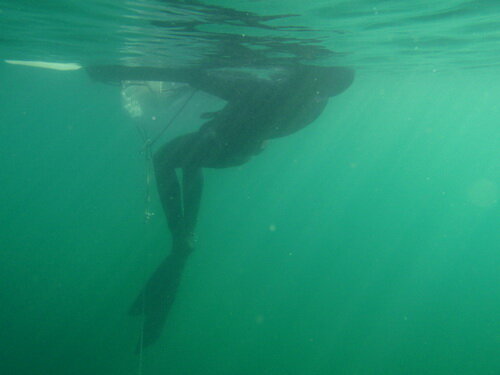 Здесь, уже на глубине десять метров вы попадаете в ночь, да именно в кромешную непроглядную ночь. Боишься ли ты темноты, фридайвер ? Фридайвинг на озере Табашино, проверим себя Именно сегодня мы решили сменить наш привычный Карась на самое глубокое и загадочное озеро нашей республики , озеро Табашино. Погода была пасмурной, но дождя, все же не было. Добравшись на место, распаковываемся и надуваем лодку. Облачаемся в гидрокостюмы, цепляем к лодке буй и вперед по волнам. На сей раз на нашей "яхте" был чудесный прибор, называется эхолот и показывает он глубину. Так вот немного отойдя от берега, глубина начала стремительно расти и вот эпическое значение 52,5 метра!!! Покружив над провалом, мы обнаружили, что впадина достаточно большая по своей территории. Отлично, бросаю донный блинчик и, спустя некоторое время чувствую натяжку на тросе. От груза до дна очень и очень много (трос 30 метров). Остаюсь у буя разныриваться, Юра увозит лодку на берег и вскоре приплывет ко мне. Итак по озеру, ко