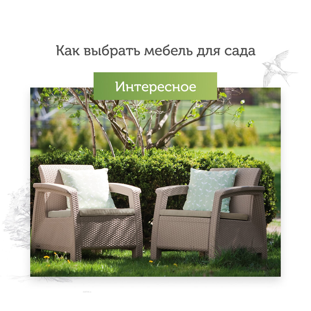 Готовимся к летнему сезону До открытия весенне-летнего сезона остаётся совсем немного времени. И пора бы задуматься о покупке садовой мебели для загородного участка. Поэтому мы решили подготовить для вас пост с советами по выбору садовой мебели ⤵️ Для начала стоит определиться, какая именно мебель вам нужна: ◼️ кресла/стулья; ◼️ стол; ◼️ диван; ◼️ садовые качели; ◼️ кресло-качалка. При выборе стоит учитывать, что такая мебель будет стоять на улице, поэтому она должна быть устойчивой к воздействию солнца и влаги. А это уже зависит от материалов, из которых она изготовлена. 📌 Пластик Пластиковая мебель доступна по цене, имеет широкий выбор форм и цветов, легкая и простая в уходе. Но вместе с этим мебель из пластика недолговечна: ◼️ выгорает на солнце; ◼️ её легко поцарапать; ◼️ со временем становится очень хрупкой. 📌 Металл Металлическая мебель может быть как простой и лаконичной, так и более изысканной, кованой. Такая мебель имеет длительный срок службы и хорошие эксплуатационные пока