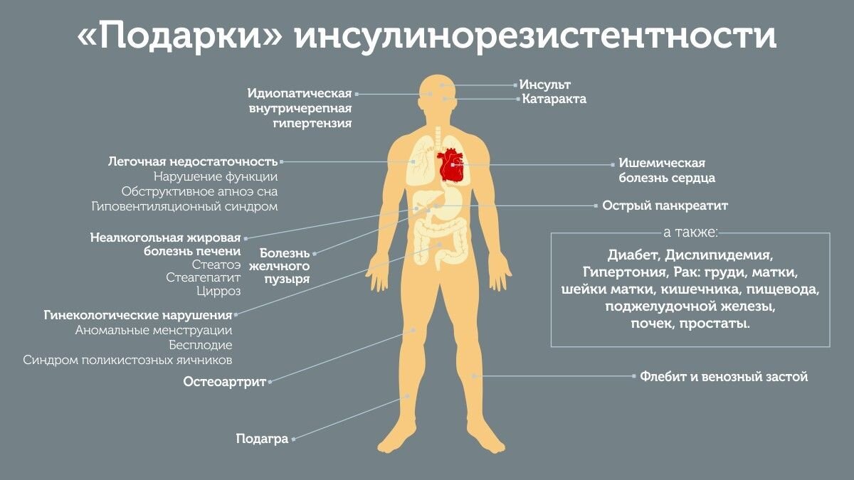 Несколько лет назад я с удивлением обнаружила у себя клинические признаки инсулинорезистентности. То, что я считала простой особенностью обмена веществ, оказалось нарушением толерантности к инсулину. Это при том, что лишнего веса у меня никогда не было. Так бывает и довольно часто.