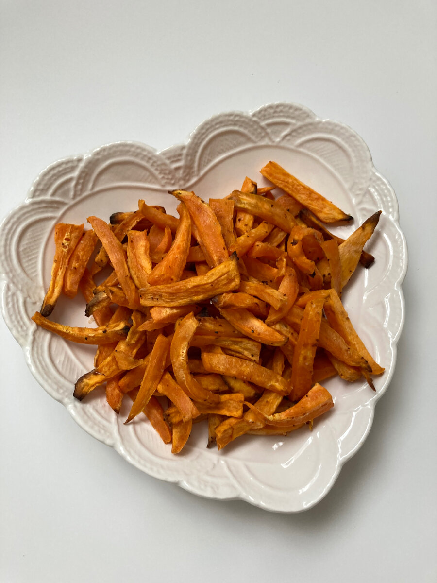 Прекрасная полезная альтернатива картошке фри🍟 Ингредиенты: •1,2 кг батата или других подходящих овощей •кокосовое масло extra virgin •морская соль •по вкусу специи (копченая паприка, чесночный порошок) Способ приготовления: •Очистите батат от кожуры и порежьте его на брусочки в форме картошки фри или картофеля по-деревенски. •Приготовьте противень: застелите его пергаментом. •Разогрейте духовку до 200 градусов. Смешайте в большой миске батат с солью, маслом и специями. •Выложите батат на противень и поместите в духовку. •Запекайте в течение 40 минут или пока овощи не приобретут золотистую корочку. В середине времени запекания перемешайте овощи. •Подавайте с гуакамоле или домашним кешью-майонезом. P.S. Также можно приготовить морковь, кольраби, пастернак, только порезанный пастернак нужно предварительно замочить в холодной воде и поставить в холодильник минимум на 1 час.#рецептыизжизни