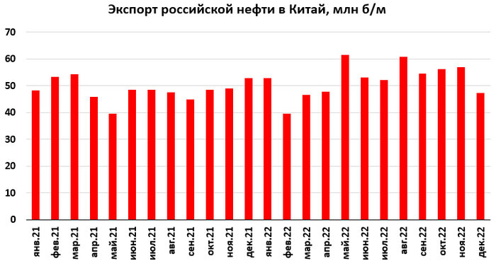 Александр Новак заявил, что в 2022 году по сравнению с 2021 экспорт нефти в Индию вырос в 22 раза, а в Китай на 8%. Попробуем подтвердить слова зампреда. С начала займемся Китаем. Для этого обратимся к китайской таможне. Согласно таможенным данным, экспорт нефти составил: - В 2021 году примерно 581, 37 млн баррелей, а в 2022 году 629, 61 млн баррелей. Рост 8, 3%. По Китаю Новак не соврал:) Для наглядности вывел экспорт за каждый месяц на график. Традиционно наши государственные деятели не говорят о ценах. Но мы коротко отметим: Китай платил дорого:) В динамике цен интересно рассмотреть период "до сво". В это время импортная цена, рассчитанная по данным таможенной статистики, очень близка к Urals. А как мы знаем, раньше котировка Urals, во-первых, была CIF, а во-вторых, в Роттердаме происходило очень много сделок с российской нефтью (сейчас Urals - это FOB, то есть, цена в российском порту). Если мы хотим с высокой точностью прикинуть цену Urals, рассчитанную по "до свошным" правилам, т