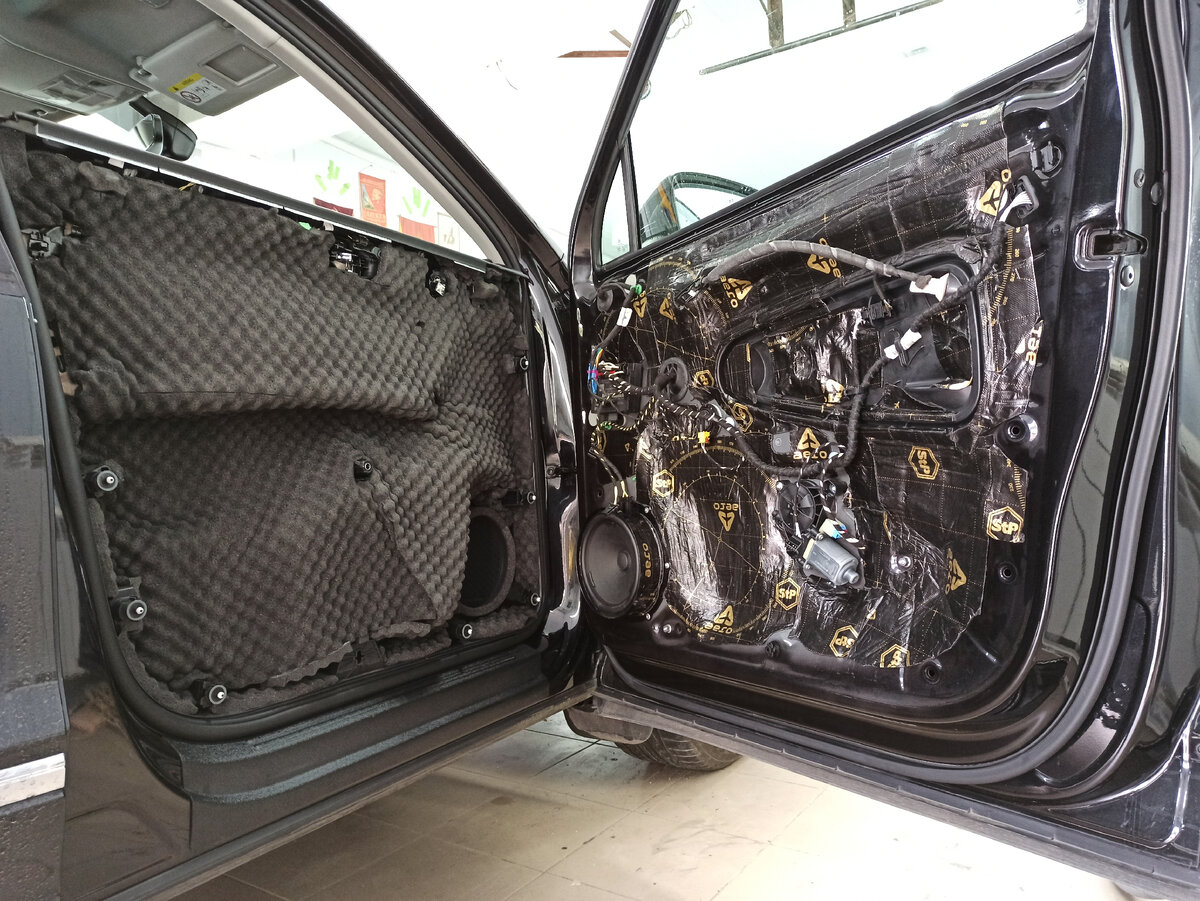 Основная задача шумоизоляции дверей- уменьшение скрипов и снижение шумов со стороны улицы. На примере Volkswagen Tiguan я покажу, как добиться хороших результатов благодаря разумному подходу и правильно подобранным материалам с учетом конструктивных особенностей автомобиля. Очищаем и обезжириваем внутренний металл двери. Устанавливаем вибродемпфирующий материал STP Aero, хорошо прикатываем для удаления воздушных пузырей. Наружную часть двери также полностью обрабатываем вибродемпфирующим материалом STP Aero. Дверные карты для устранения дребезга пластика обрабатываем виброизоляционным материалом STP GB2 Вторым слоем устанавливаем звукопоглощающий материал Biplast Premium 15A. В итоге мы получили: -Снижение шумов со стороны улицы. -Более мягкое закрывание дверей. -Улучшение звучания аудиосистемы.