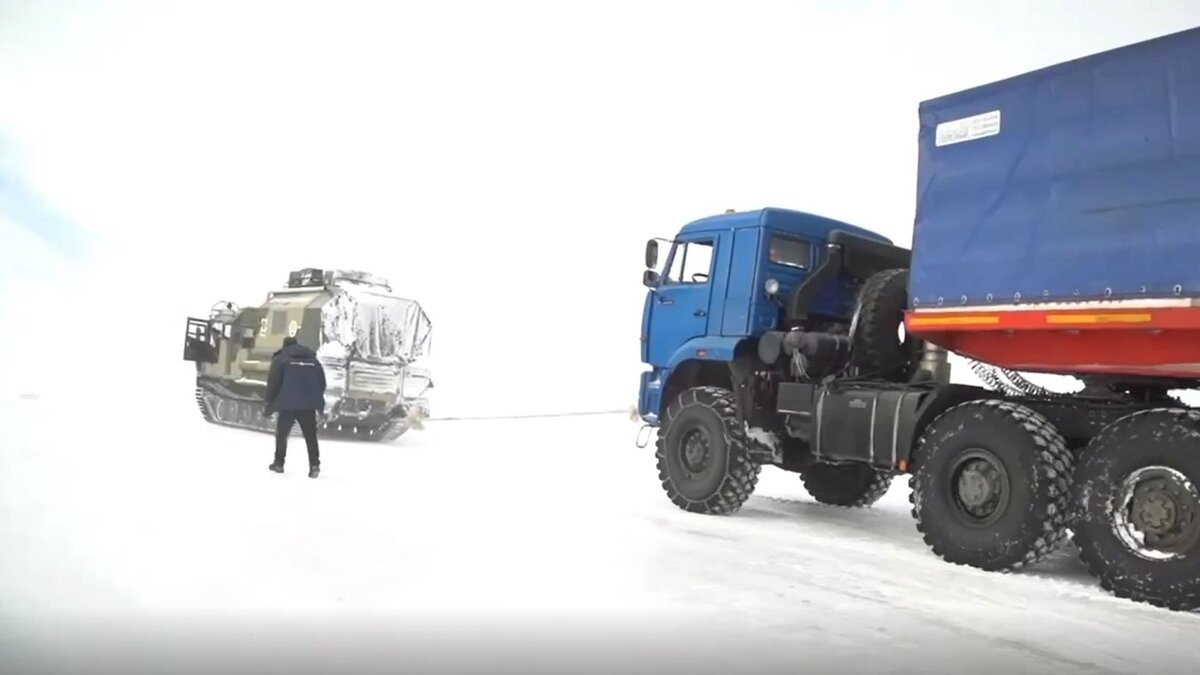 Участники Арктической экспедиции МЧС спасли из снежного плена экипаж грузовика