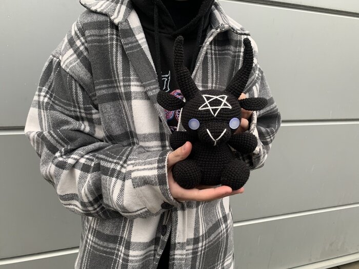 Добрый день, с вами Tori) Я давно хотела связать Бафомета, который будет полностью черного цвета. Он связан из моей любимой пряжи "Камтекс". Любовь к этой торговой марке у меня появилась после того, как я связала из нее Пчелку. Игрушки из этой пряжи получаются очень аккуратными, узелочек к узелочку (как говорит Маша). Как только Бафомет был готов, он сразу же нашел себе новый дом. Наша подписчица в этот же день мне написала, что влюбилась в игрушку с первого взгляда. Кстати, Бафомету не будет одиноко у нашей подписчицы, так как он не первая игрушка, которую она приютила из нашей Творческой мастерской. Фотографировать "плюшевого дьявола" было решено с новой хозяйкой, так как они так хорошо смотрятся вместе, что это хотелось запечатлеть на память. Материалы для создания Бафомета: - Черный - «Камтекс «Детская забава» - Белый - «Камтекс «Детская забава» - Любимый крючок №2 Описание Бафомета вы сможете найти в нашей группе в ВК. Ссылка на ВК автора: https://vk.com/id322606830 А так же наш т