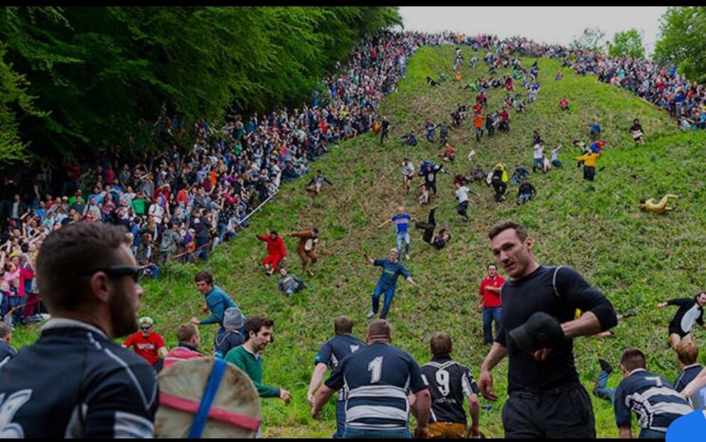 About the game. This is an annual competition held on the last Monday of May. At 12:00 local time. Competitions are held on Cooper's Hill near Gloucester in the Cotswolds, England. The cheese race is traditional for people who live in the village of Brockworth. but recently, people from all over the world have been taking part in it. the origin is unknown.The game has been around for hundreds of years. there is a version that the rsa originated from pagan rituals. rolling burning bundles of brushwood from the mountain, which showed the onset of the new year. Racing often brings serious injuries. Rules of the game participants climb to the top of the hill and wait for the signal. then a piece of Gloucester cheese is allowed down the slope, followed by all the participants. the one who first crossed the finish line and grabbed the cheese gets it as a reward.
