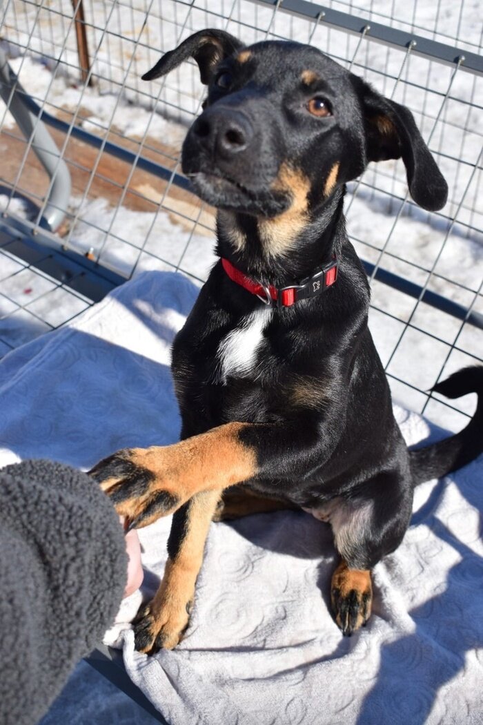 Она с радостью бросается к каждому пришедшему на передержку - вы ведь за мной, да? Щенок девочка-куколка Афина в поисках дома