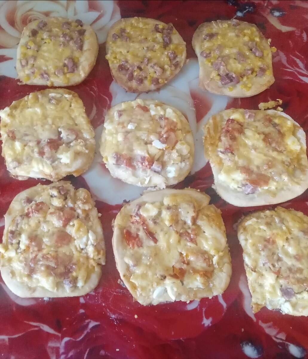 Саша недавно делал как выше перечислено, а у дочери просто колбаса, кукуруза консервированная и сыр. Такую как у нас, она не любит. Потому-что не яйца ни грибы не ест, а ещё мы делаем такую же, только вместо кукурузы консервированное ананасы. Тоже получается интересная на вкус.