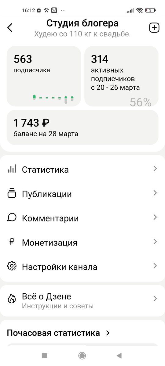 Добрый холодный денёк, мои дорогие друзья! К нам в город вернулся минус. Минус 1 за окном, никак не приходит весна! А между тем исполнилось ровно два месяца моему каналу, который я завела в конце января. Вот это время пролетело!!!! На данный момент у меня в районе 560 подписчиков, они колеблятся, так как отписки присутствуют, но в среднем 560 человек. Я стараюсь всём вам отвечать, кто пишет коментарии или хотя бы лайкать, чтобы уделить внимание каждому из вас. Стараюсь ходить к вам и если не пишу комментарии, то лайкаю ваши статьи практически всегда с главной страницы, где вы у меня высвечиваетесь. Это мой вклад в ваше развитие и развитие вашего канала. Так как канал заводился для похудения, а не для заработка, то финансовую часть вы можете посмотреть из скриншота. Деньги не выводились ни разу. Занятость физлицо, не нужна мне самозанятость, некогда этим заниматься. Из-за этих копеек время тратить не хочется на изучение ненужных мне программ,налогов и прочего. Скажу сразу, что добрые