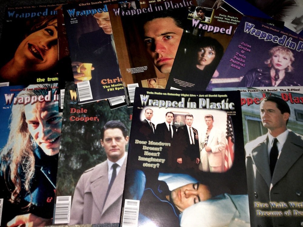 Осенью 1992 года в США начал издаваться посвящённый сериалу Твин Пикс журнал «Wrapped in Plastic». Выходя с периодичностью раз в 2-3 месяца, журнал быстро обрёл огромную популярность среди фанатов телесериала. Название происходит от ставшей крылатой реплики Пита Мартелла о Лоре Палмер: «She’s dead… Wrapped in plastic!» (Она мертва… завёрнута в полиэтилен). Главный редактор, Джон Торн, освещал все события, связанные с актёрами сериала и творчеством Дэвида Линча. Однако, в 2005 году журнал прекратил существование — его 75-й выпуск стал последним. Сегодня Джон Торн входит в редакционный совет нового журнала Blue Rose (Голубая Роза), первый номер которого вышел в свет в феврале 2017 года. На его первой странице Джон поделился такой репликой: На протяжение многих лет (на самом деле, декад) люди спрашивали моё мнение о том, появится ли когда-либо на свет продолжение Твин Пикса. Я всегда отвечал: «Нет, этого никогда не случится». Два года назад я узнал, что ошибся. Как и все, я был ошеломлён,