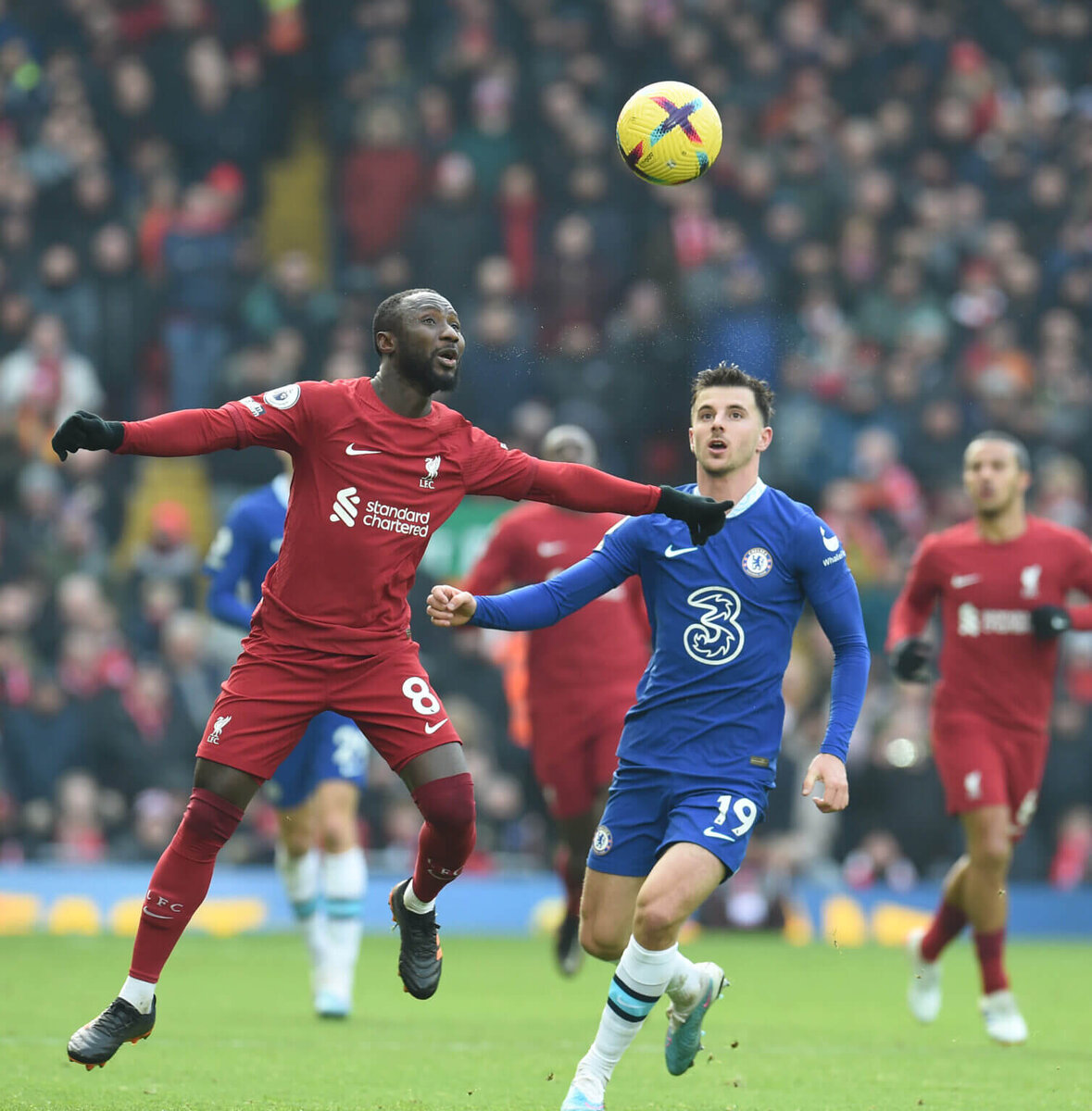 Маунт противодействует Наби Кейта за владение мячом на «Энфилде» в январе (Фото: Джон Пауэлл/Liverpool FC via Getty Images)