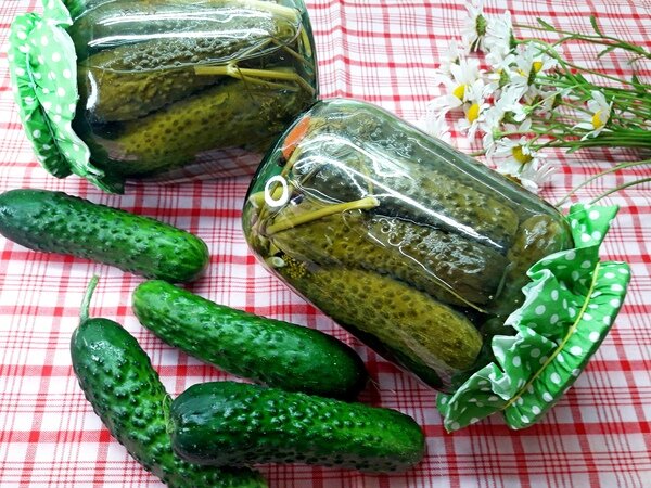 Маринованные огурцы по этому рецепту не требуют стерилизации, да и весь процесс очень прост, без лишних заморочек и с использованием минимального количества специй.