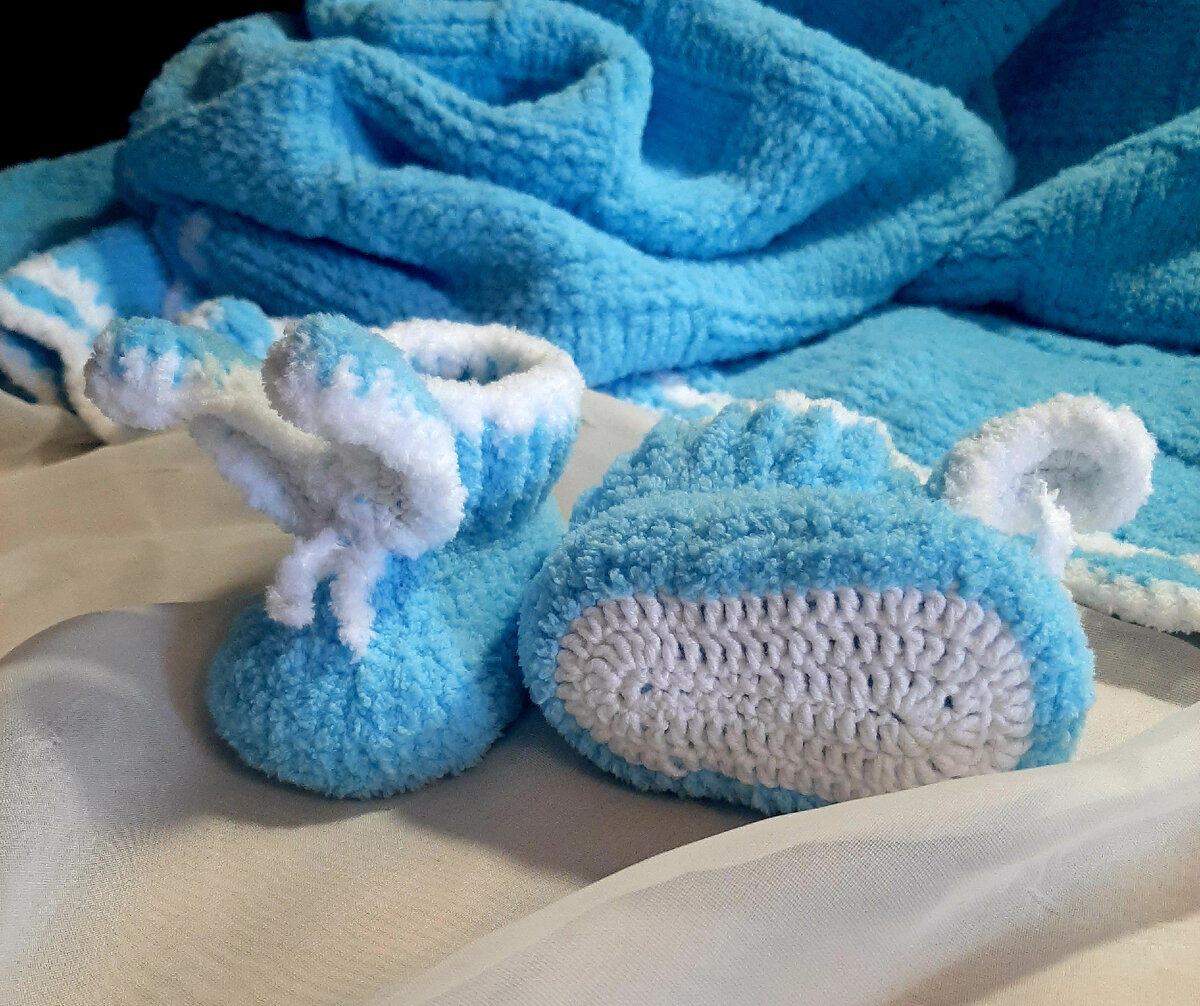 На фоне мороза и нахлынувшего вдохновения, к пледу связались ещё и пинеточки.🤗 И такие они получились милые и мягенькие, что просто не возможно не поделиться. Главное счастливые родители довольны🤗 Тапчушки вышли не сильно маленькие. Поэтому, не исключено, что носиться они будут немножко дольше, чем я расчитывала😊. Все будет зависеть от того, как богатырь будет расти и развиваться🤗 Плюс, пинетки на двойной подошве, поэтому очень тёплые, а значит спасут от замерзания в любые холода. Подошву вязала по стандартной схеме. Только внешнюю стельку, из хлопка, 5-й ряд обвязала Softy. А внутреннюю все ряды сразу вязала из Softy. В общем, комплект получился практичный и очень милый🤗 Если честно получаю огромное удовольствие от вязания детских вещей😍. Какой-то заряд энергией🤗 А вы?