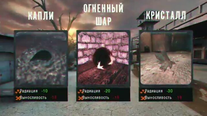 В данной статье мы продолжим изучать арты Теней Чернобыля. Капля, Огненный Шар, Кристал. Они полностью снимают у героя очки выносливости, но взамен дают сопротивляемость к радиации. Это довольно распространенные полезные артефакты, найти их можно в основном на Дикой Территории, где они просто кучками разбросаны по земле. Пустышка. Это еще один артефакт не имеющий ни каких негативных свойств, он защищает на 30 процентов от любого огненного воздействия. Таких как термические аномалии, или атаки огненного полтергейста. 4 пустышки соответственно дают полную устойчивую к огню. Пленка. Самый редкий артефакт в Тенях Чернобыля эта пленка, за всю игру она встречается всего лишь три раза. В подземелье на Дикой Территории, в тайнике на Янтаре, и выдается профессором Сахаровым в награду за квест по доставке огненного шара. Больше пленку ни где в игре раздобыть нельзя. Имеет она только один положительный эффект, это 30 процентов защиты от аномалий холодец. Кровь Камня, Ломоть Мяса, Душа. Данны