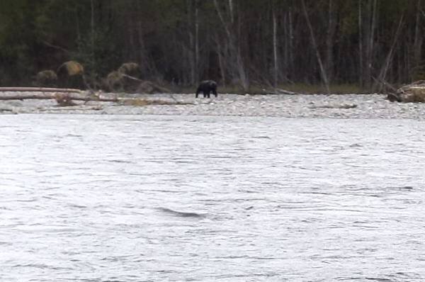 А еще мы снова увидели медведя, и даже не медведя, а медведицу с медвежонком. Она вывела его на берег покупаться. Увидев как впереди нас медведица начинает переплывать реку, мы, честно говоря, струхнули. Пока мы думали, как ее обрулить, она видно тоже нас заметила, вышла на берег и, забрав медвежонка, скрылась в кустах. На что мы с облегчением вздохнули и даже покричали ей вслед.