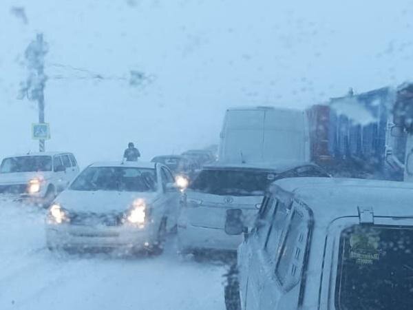 Из-за огромной пробки эвакуировали 20 человек. Кроме того, в районе ЧС развернули семь мобильных и пять стационарных пунктов обогрева и питания, 15 пунктов временного размещения (ПВР). По информации регионального правительства, там находятся 147 человек, из которых 34 - дети.