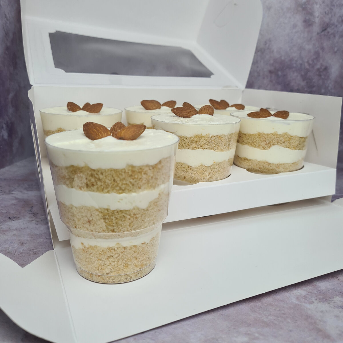 В прошлой статье мы выпекли с Вами кексы и тесто для трайфлов (если пропустили, ищите в предыдущей статье, или в подборке "Десерты, перекусы"), а в этой статье мы сделаем крем для наших трайфлов и соберем их. Повторюсь, трайфлы у меня будут "Рафаэлло". Бисквит мы уже выпекли. Дожидаемся пока он остынет. Измельчаем его в блендере до состояния крошки. А для крема нам понадобится: Готовим крем. В миску отправляем 300 грамм холодного творожного сыра, 170 грамм холодных сливок жирностью не менее 33%, и 110 грамм сахарной пудры. На высокой скорости миксера взбиваем до плотности. Крем взбивается буквально за пару минут. Получается очень нежным, но при этом довольно плотным. Добавляем в крем кокосовую стружку 50 грамм. Всё перемешиваем. Для удобства крем перекладываем в кондитерский мешок. Начинаем собирать наши трайфлы. Я буду писать сколько примерно грамм теста и крема на каждый слой уходит на один стаканчик. Первый слой - тесто, 20 грамм. Второй - крем, 20 грамм Третий - тесто, 20 грамм
