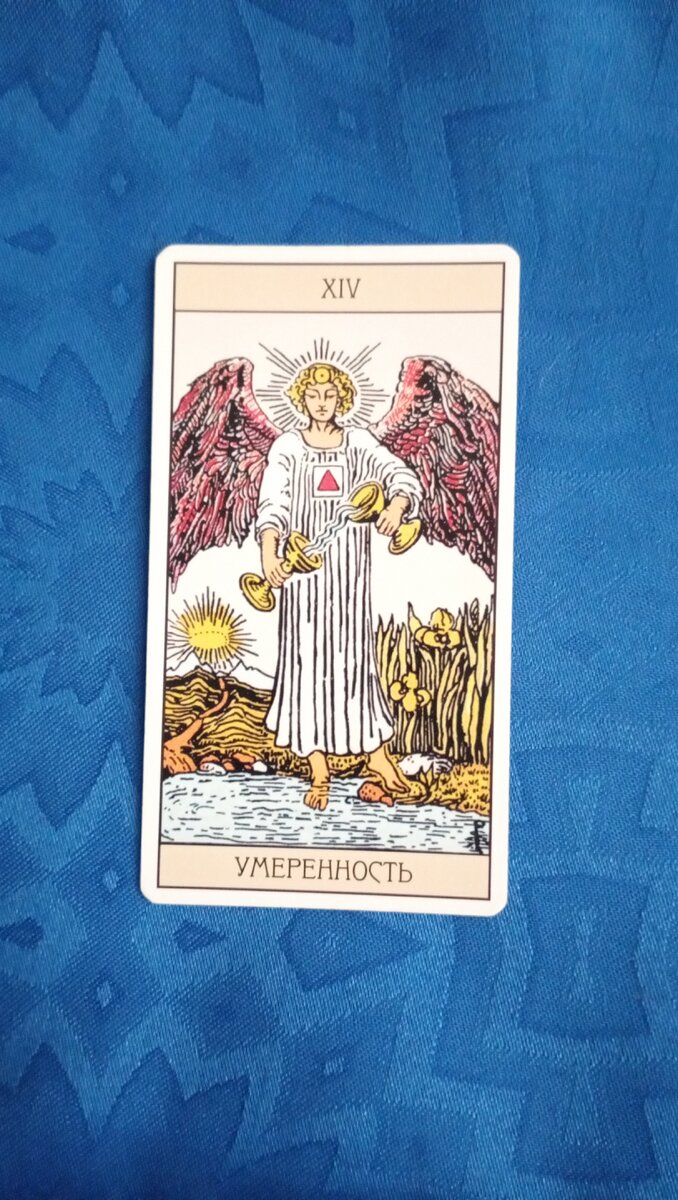 Доброе утро! А вот я даже не удивилась, что выпал сегодня этот Аркан!))) Умеренность, призывает на к равновесию, стабильности и поиску баланса. Баланса между духовным и мирским, между активностью и отдыхом, между яростью и покаянием. Между женскими и мужскими началами в каждом из нас. Аркан призывает нас к гармонизации, к обновлению сил. Ангел времени ( а именно он на символике Аркана) призывает нас обрести мир в душе и полюбить себя ( со всеми своими сторонами). В карьере и работе призывает нас спокойно и без лишней суеты двигаться вперёд. Это процесс, не результат. В отношениях говорит, что сегодня показаны гармоничные отношения, без особых эмоциональных всплесков. По здоровью, постепенное выздоровление, а также профилактика) умеренность имеет отношение к диете и ограничениям.