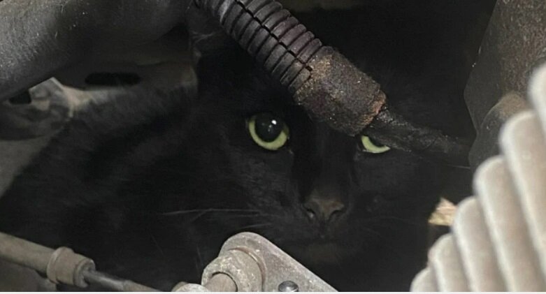 Тем временем ее сосед 65-летний Дэвид сел в свой автомобиль, чтобы отвезти внуков в школу. Ребята ушли учиться, а Дэвид не спеша вернулся домой. Оставив авто на парковке возле дома, он решил проверить уровень масла, а когда открыл капот был ошарашен. Под ним находился черный пушистый комок, который неподвижно таращил на него два огромных глаза. Это была кошка. Она не шевелилась, поэтому мужчина засомневался, жива ли она.