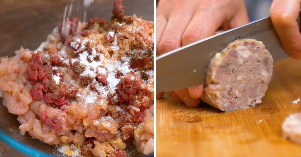 Совсем скоро мы будем отмечать главный христианский праздник — Воскресение Христово. И одним из атрибутов пасхальной корзины является домашняя колбаса. Обычно ее подают на стол вместе с освященными куличами и яйцами. Редакция «Со Вкусом» с радостью поделится с вами простым рецептом вкусного и относительно недорогого мясного изделия. Эта домашняя колбаса без оболочки также имеет название «Ассорти», ведь содержит в себе несколько видов мяса. В готовом виде изделие получается очень сочным, ароматным, с красивым ровным срезом. Причем готовить такую натуральную вкуснятину проще некуда. В отдел с колбасами — больше ни ногой! Приступим? Домашняя колбаса без оболочки: секрет удачного приготовления В такую колбасу можно запросто добавлять сыр, вареные овощи, зелень, куриные сердечки с печенью и даже орехи. Если вы любитель копченых ноток, киньте в фарш горсть распаренного чернослива. С приправами и специями тут стоит быть поаккуратнее, есть риск «перебить» натуральный вкус мяса. Храните готовые