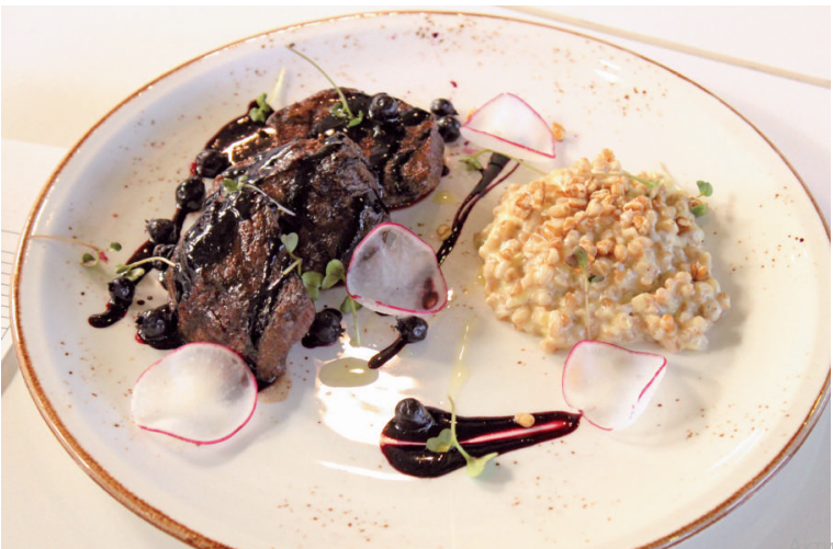 №1. МЕДАЛЬОНЫ ИЗ ОЛЕНИНЫ ПОД СОУСОМ ИЗ ИРГИ С РИЗОТТО ИЗ ПОЛБЫ