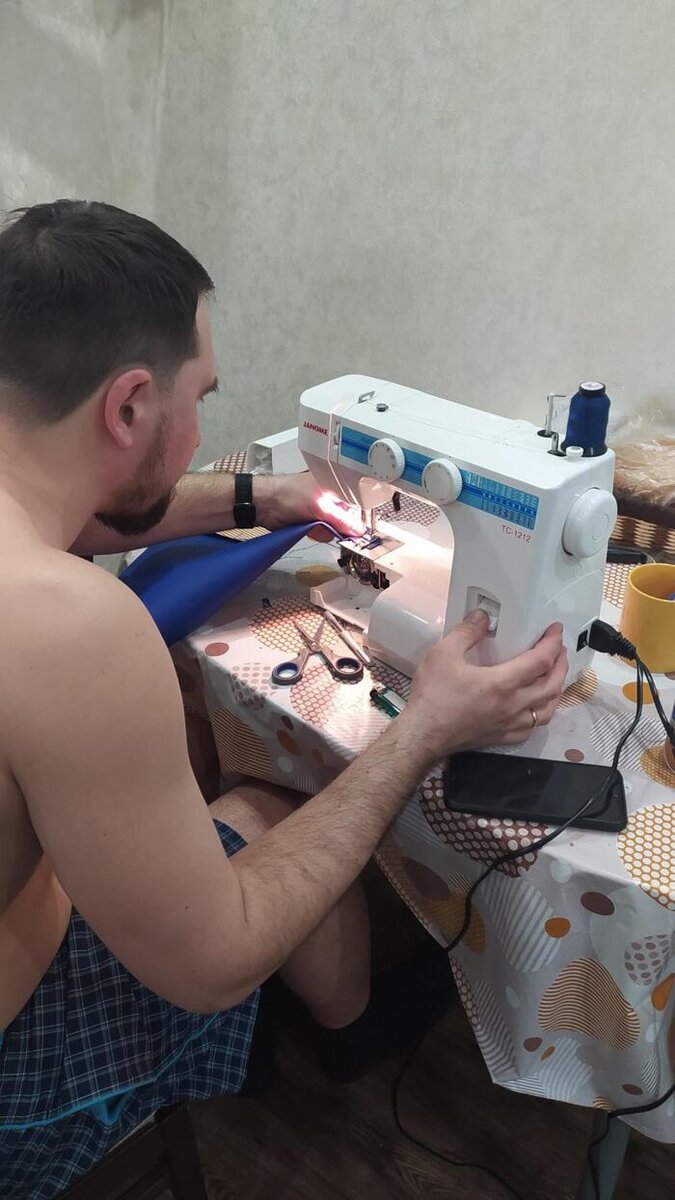 Потом уже летом моя семья уехала отдыхать, а я остался работать. В тот же день, как я посадил родных на самолёт я поехал в гараж за лодкой, чтобы притащить её домой, так как я созрел на самостоятельный пошив тента. В задумке было сшить носовой тент, а к нему уже пристегивающуюся остальную часть полностью закрывающую остаток лодки. Привез её домой, накачал, всю измерил, рассчитал количество материалов, примерил сшитые накладки и сумки, фото с примерки выше. Потом поехал купил материалы и фурнитуру и начал искать, где мне загнуть дуги, нужен был трубогиб. Взор мой пал на прокат инструмента, но мне не прельщала перспектива таскать этот станок, да и ещё платить 800 рублей прокатных за два загиба трубы (я решил сначала попробовать сшить носовой и если получится, то потом уже покупать материалы и гнуть трубы для остального тента). В итоге меня озарила идея, я нашёл на Авито людей, которые продавали б/у трубогибы и написал им, могу ли я подъехать и загнуть два угла. Один из них откликнулся и уже следующим утром мы с ним сделали всё что мне нужно было. За свои услуги человек попросил 200 рублей на сигареты, оба остались довольны. Затем уже дома я начал пошив тента. Сначала выставил дугу по высоте, забегая вперёд - получилась низковата, можно было бы повыше. Затем начал постоянно примеряя изделие шить, вшил прозрачную ПВХ. Основные этапы можно увидеть на фото ниже.