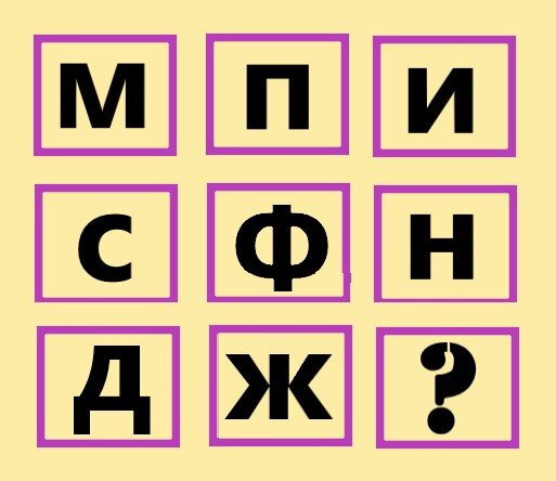 Какой буквы не хватает в последовательности М П И С Ф Н Д Ж Определите закономерность и найдите какая буква пропущена.