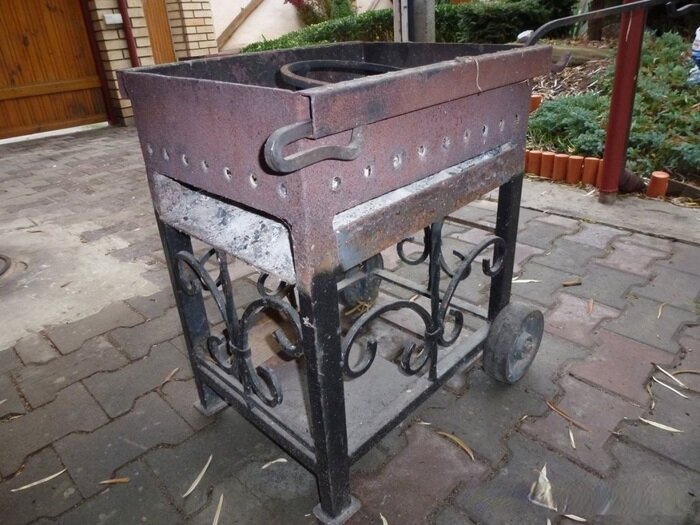 В посте Как я делал мангал и стартер, рассказал о модернизации своего рабочего места в выходные дни, мангала и стартера для розжига. Лирическое отступление меня побудило сделать то, что в процессе эксплуатации мангала выяснилось, что не всем и не всегда понятно, что очень важны размеры мангала. А именно, его глубина. Этот аспект часто вызывает вопросы и споры. Признаю свою ошибку в том, что сразу не заострил на этом внимание и популярно не разложил по полочкам ход своих мыслей, и причину урезать глубину своего мангала до 120 мм. Давненько, ребята которые делали решетки из металла на моей даче, что на берегу реки, бонусом предложили сделать мангал. Так как у них был опыт (с их слов), я не вникал особо, в конструкцию. Единственное о чем попросил, это сделать его на колесиках, что бы можно было транспортировать, хоть и не по большому, двору. Сделали мангал на колесиках. С двойным дном, поддувом снизу и отверстиями по бокам. Глубина сантиметров 20, не менее. Красивая, тяжелая вещь!