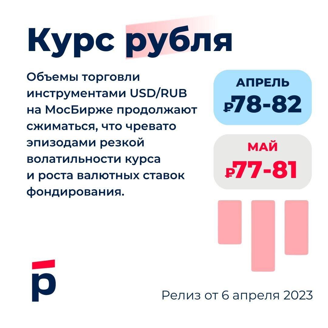 Прогнозы от аналитиков Росбанка Курс рубля Продолжается обесценивание рубля, несмотря на укрепление сырьевых котировок. Основной причиной этого является вывод капитала иностранными инвесторами, что создает негативные последствия для валютного курса из-за снижения ликвидности рынка валют (доллар, евро). Также Минфин анонсировал уменьшение объемов продаж юаня в апреле из резервов до 74.6 млрд руб. (113.6 млрд руб. в марте), что снизит структурную поддержку рубля. Курс евро Согласно мартовским прогнозам ФРС, пиковое значение ставки в 5.1% годовых лишь на 25 бп превышает текущий уровень (4.9% годовых), поэтому участники рынка считают, что скоро ФРС прекратит повышение ставки. Позиция ЕЦБ может оказаться более жесткой, особенно когда инфляция в еврозоне снижает темп медленнее ожиданий. Курс юаня Новостная повестка вокруг Китая в последние недели была насыщена: изменение в руководстве КНР и новый виток политических трений с США, в том числе из-за знакового визита Си Цзиньпина в Москву. Помим