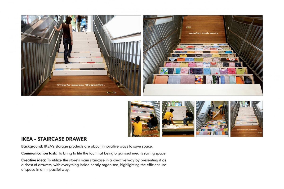 В мире нет недостатка в лестницах, и многие гениальные тактики партизанского маркетинга используют лестницы для собственной выгоды. Эта реклама ИКЕА напоминает пользователям, как мебель ИКЕА экономит место в вашем доме.