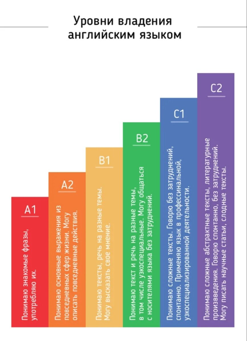 Уровни Владения Иностранным языком Существуют две основные признанные шкалы уровней владения английским языком: Международная и Европейская. Европейский vs Международный уровни: 1. А1 vs Beginner, Elementary ( Начинающий) (Алфавит, произношение, бытовые фразы) ≈ 1000—1500 слов Если заниматься плотно, то через месяц вы будете: Beginner Говорить о себе в 2—3 фразах, отвечать на простые вопросы. Приветствовать и прощаться с собеседником, поддерживать короткий диалог: узнавать о делах, интересах собеседника, о его семье и профессии. Читать элементарные предложения (не более 7—9 слов). Воспринимать на слух короткие предложения с базовой лексикой. Сможете написать свое имя, дату рождения, краткую информацию о себе. Elementary Научитесь говорить о себе и своей семье, о своих хобби, предпочтениях в еде, музыке, кухни и т. д. Обмениваться 2—3 фразами о себе, семье, своем городе. Выражать мнение о том, что нравится. Спрашивать об интересах собеседника. Читать небольшие тексты и диалоги со знако
