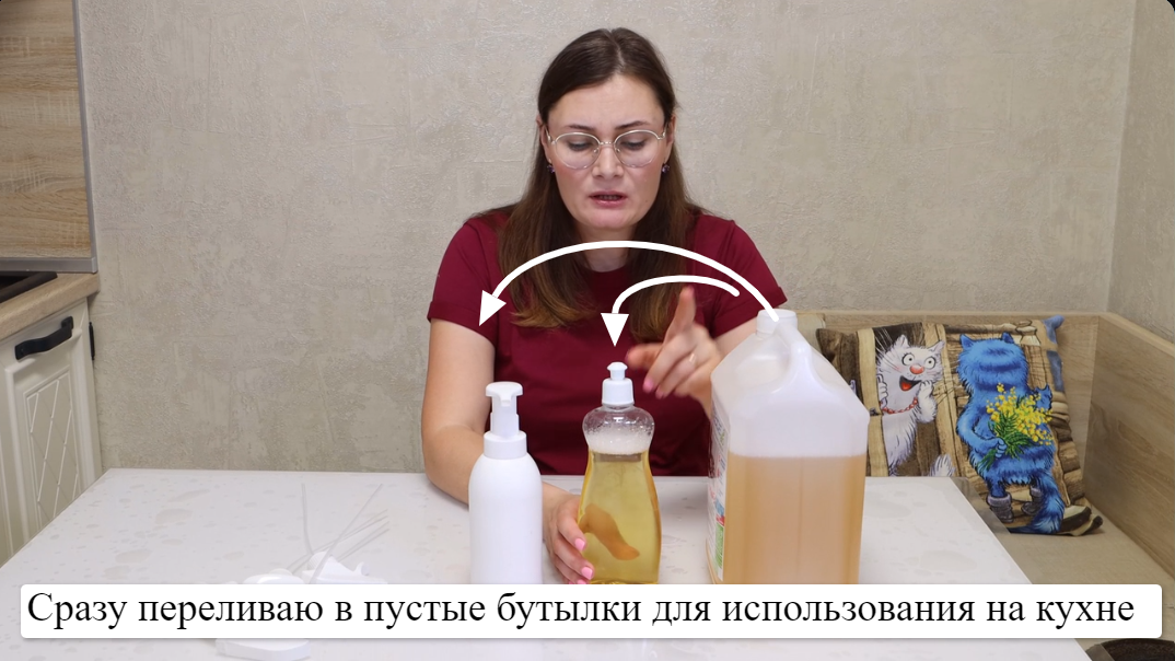 Из канистры сразу переливаю средство в бутылку с крышкой из-под средства для мытья посуды – для чистки плиты, столешницы, раковины и тд.