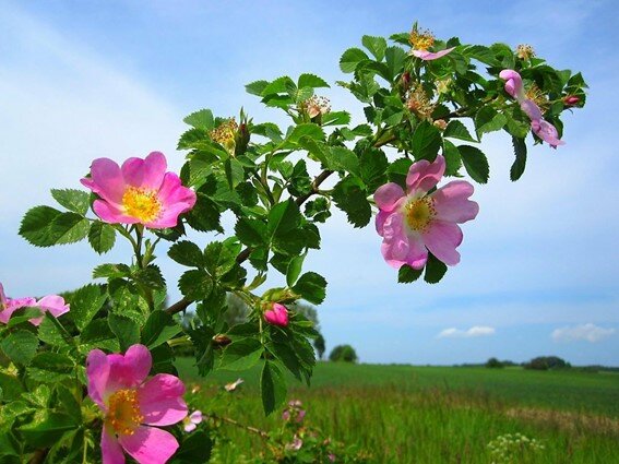 Факт1. Всего существует от 300 до 500 видов шиповника в зависимости от метода классификации. Именно вида, а не сорта – строго говоря, розы тоже относятся к шиповникам, и из существует более 30 тысяч сортов. Эти цветы, пышные и красивые, были некогда выведены именно из дикорастущих кустарников шиповника, но это произошло так давно, что никто не знает, когда именно. Факт 2. В нашей стране произрастает до 100 видов этого растения, наиболее распространённым из которых является шиповник майский. Он растёт практически везде, от западных границ России до долготы озера Байкал. Его плоды являются уникальным концентратом натуральных витаминов. Более того, ботаники вообще называют его самым важным витаминным растением всей русской флоры. Одного лишь витамина С в его плодах в 10 раз больше, чем в лимоне. Факт 3. Кустарники шиповника хорошо разрастаются, а потому их часто выращивают в качестве живых изгородей. Это не только красиво, но ещё и надёжно – растения эти покрыты острыми колючками, и они т