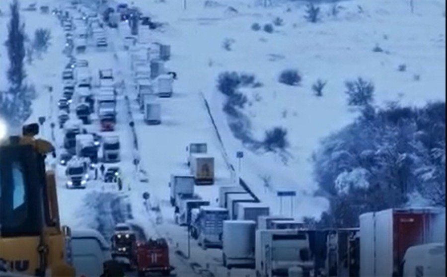Застрявшие на М-4 «Дон» водители жалуются на то, что у них заканчиваются бензин и еда