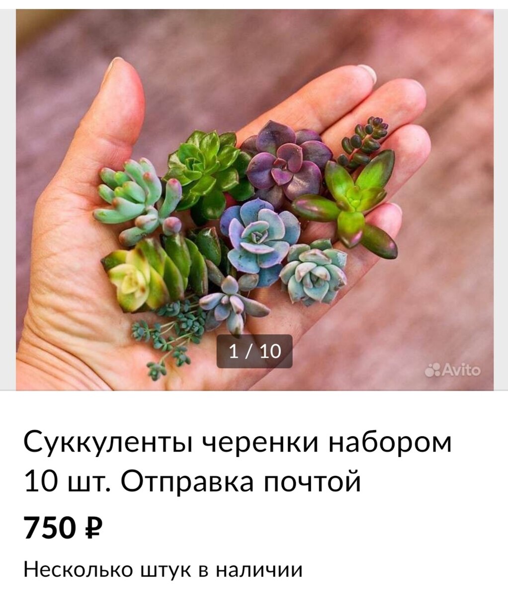 Пишу “пришла в голову”, потому что обычно суккуленты на Авито я не продаю. Для этого у меня есть своя отдельная, большим трудом созданная, бережно хранимая и лелеемая группа в ВК. Там уже достаточно много участников, хороших отзывов и море полезной информации, так что проблем с продажей выращенного у меня нет - все раскупают, на жизнь мне с ребенком хватает.