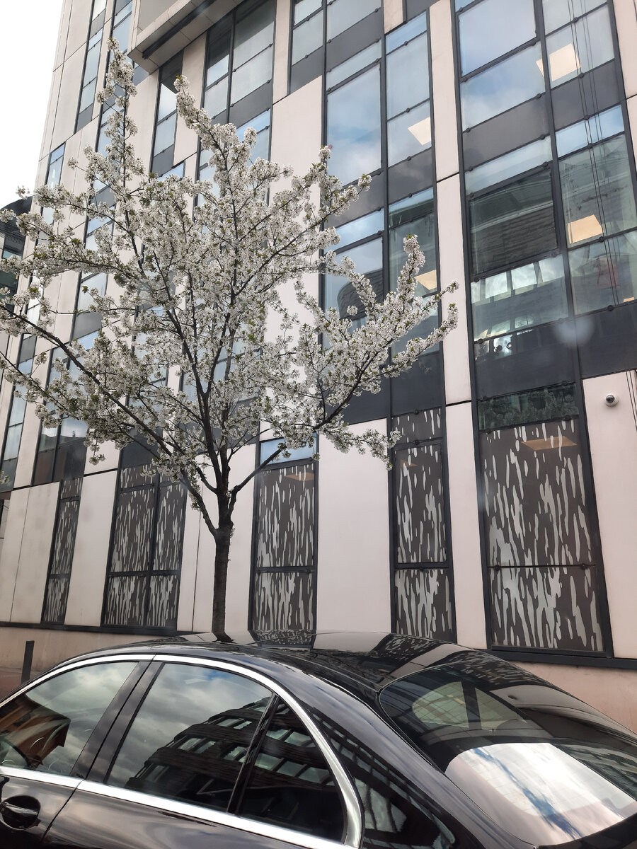 Неделька выдалась нелёгкой с самого начала. Мне утвердили два съёмочных дня, причём подряд. Первая съемка - это предложение выступить дублером известной французской актрисы. В подобном я ещё не участвовала, но согласилсь, всегда интересно попробовать что-то новое. Начиналось все спокойно. К назначенному времени я подошла в назначенное место. Это было трехэтажное здание, городо именующееся Дворец Конгрессов, в южном пригороде Парижа. А вокруг цветущие вишни: Мне выдали одежду: шелковую блузку и искусственную шубу с длинным мехом. Я немного волновалась за причёску так как у актрисы которую мне предстояло дублировать волосы короче и светлее. - Это не страшно, - сказала ассистент режиссера, - будет парик. - И даже два, для разных сцен. Ок, хорошо. Не то что я люблю парики, но не придётся стричься и краситься. Нас в это день было два персонажа: я, которая дублировалв главную героиню и темнокожая женщина, которая изображалв подругу героини. Мою коллегу звали Аделин, она мило бесед