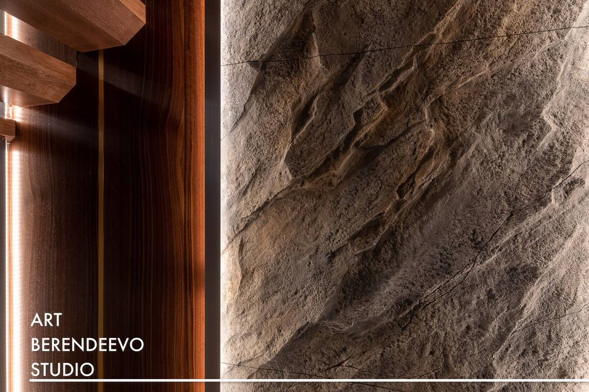 В отличие от них, искусственные скалы ручной работы из скульптурного бетона гораздо легче и проще в установке. Скульптор делает все необходимые работы на месте, что сильно сокращает время отделки помещения. При этом проводится работы с примыканиями — декоративная скала идеально «встанет» с другими облицовочными материалами в окружающий интерьер. Однако в зависимости от выбранной фактуры и степени детализации поверхности срок работ может варьироваться.