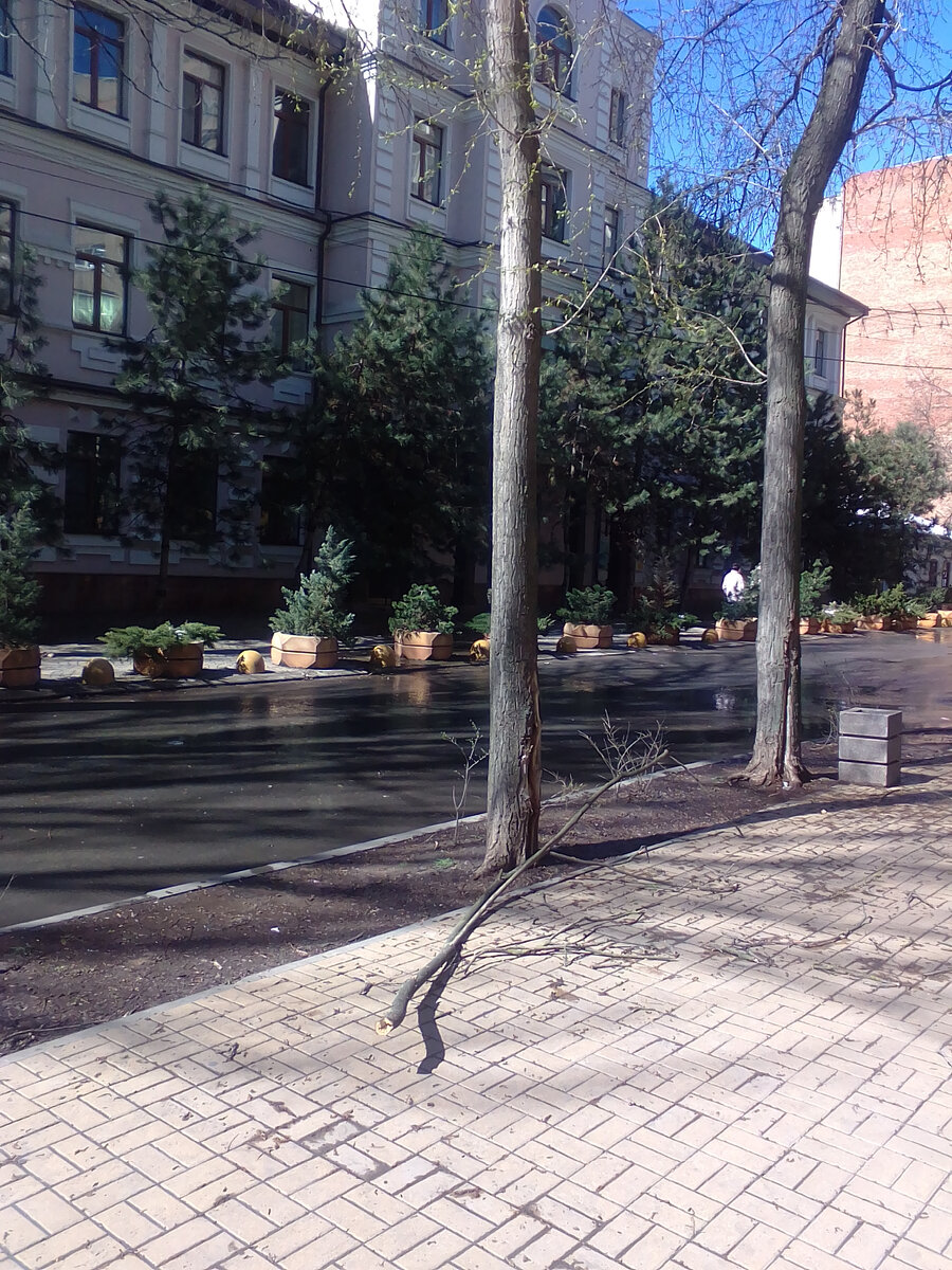 В качестве бонуса покажу вам ростовские пейзажи. Как я говорил в прошлый раз, у нас уже давно весна. А тут выпал снег. Получился эстетический парадокс: