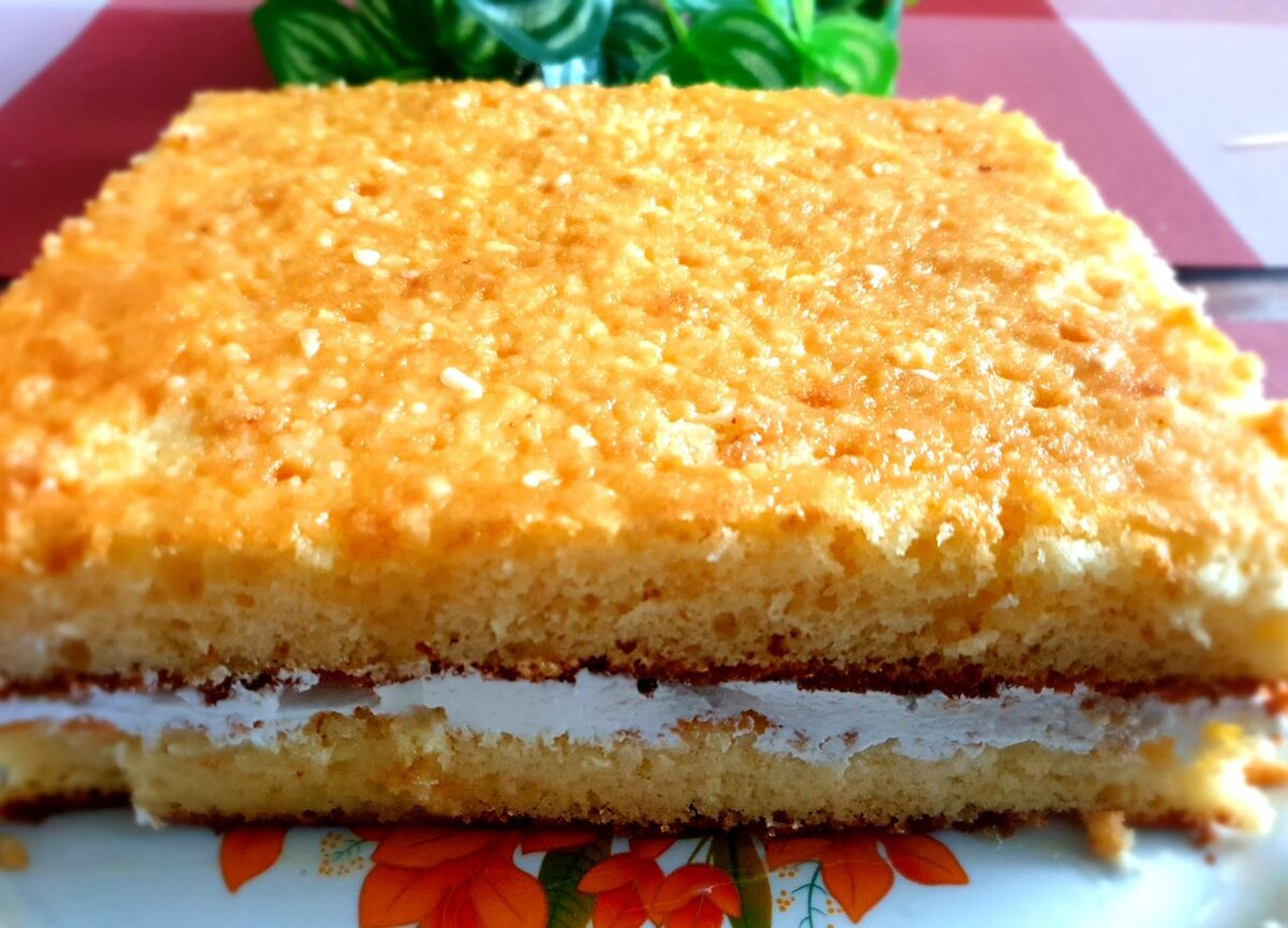 - Накрываем следующим коржом. (Бисквит можно разрезать на 2 или 3 коржа).