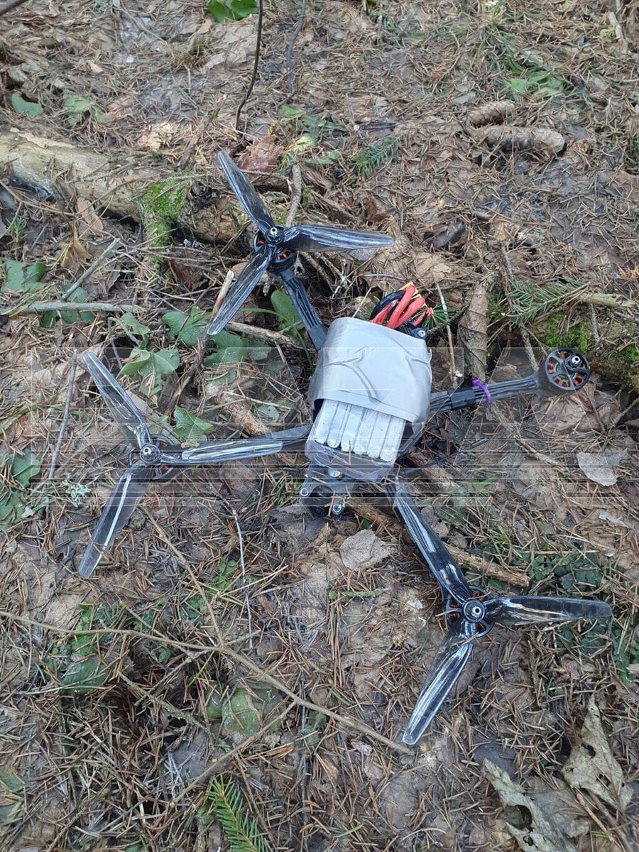 Дрон нашел прохожий, когда гулял с собакой. Он же и вызвал на место полицию. Судя по всему, аппарат упал в лесу недавно — четыре дня назад его там не было.