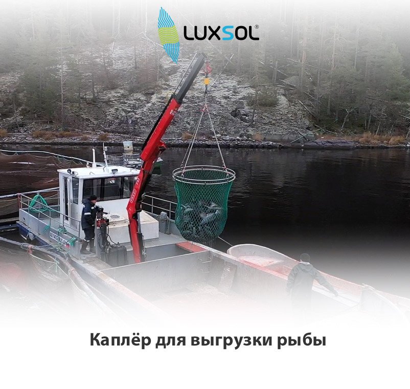 - 175 см Устройство для выгрузки рыбы из садка - каплёр, cостоит из металлического обруча, нескольких стропов, сетного полотна (мотни), стяжных колец и стяжного троса. Удобное, легкое грузозахватное устройство. Позволяет отделять рыбу от воды. Грузоподъёмность до 1200 кг. Производство ООО Люксол