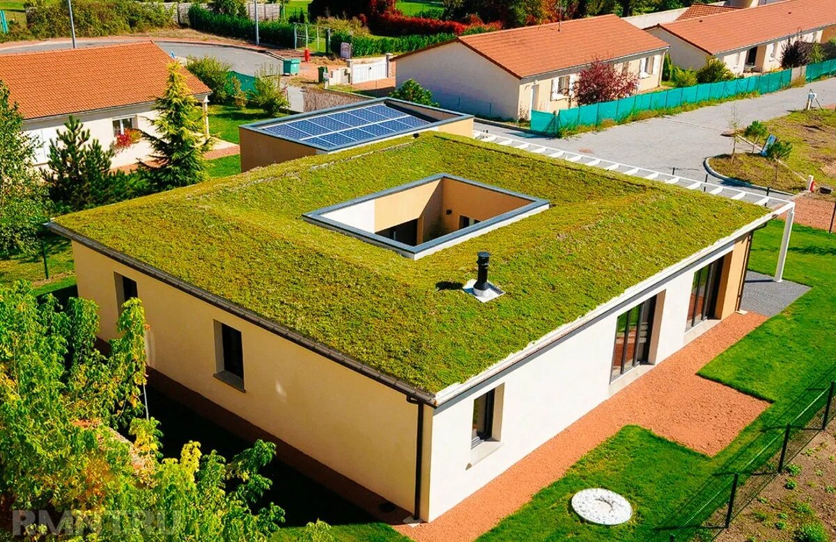 С каждым годом все больше плоских крыш приобретают популярность среди частного домостроения. И один из вариантов использования свободного пространства на плоской крыше – это озеленение. Однако сборка зеленой крыши — это не просто сборка крыши, покрытая растениями или ландшафтным дизайном. На самом деле это сложный гидроизоляционный узел, который в некоторой степени благоустроен. Внутри пирога зеленой крыши и на мембранном слое обычно находится стоячая вода. Чтобы защитить бетонный настил от воздействия влаги, мембрана внутри зеленых крыш должна быть максимально надежной. Плоская зеленая крыша должна включать прочную гидроизоляционную мембрану, защиту мембраны, стабильность во влажной среде и полную адгезию к основанию. Состав пирога для зеленой крыши выглядит так: 1. Зеленый покров 2. Грунт 3. Профилированная мембрана 4.Утеплитель XPS 5. Гидроизолирующая мембрана ПВХ 6. Геотекстиль 7. Выравнивающая стяжка 8. Уклонообразующий слой 9.Основание Основание для гидроизоляционной мембраны дол