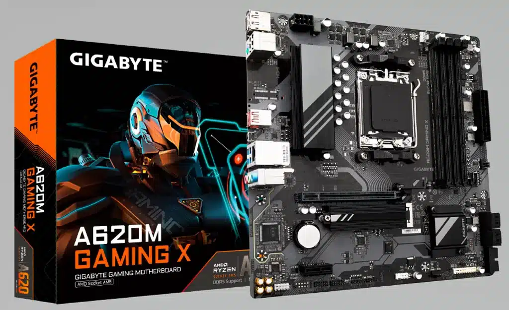 Конец марта отметился необычно большим количеством утечек про материнские платы на базе чипсета AMD A620. По некоторой информации их официальный анонс может состояться уже на следующей неделе. Тем временем в Сети появились фото ещё одной платы – Gigabyte A620M Gaming X. Плата выполнена в урезанном формате microATX, имеет лишь один полноразмерный слот PCI-E 4.0 x16 и один M.2 (PCI-E 4.0 x4). Зато есть все 4 слота для оперативной памяти и небольшой радиатор на узле питания. Остаётся напомнить, что платы с чипсетом AMD A620 не могут разгонять процессор, но позволяют изменять режимы работы оперативной памяти, а также лишены поддержки PCI-E 5.0. Ожидаемый рекомендованный ценник подобных плат в районе $100. Источник: